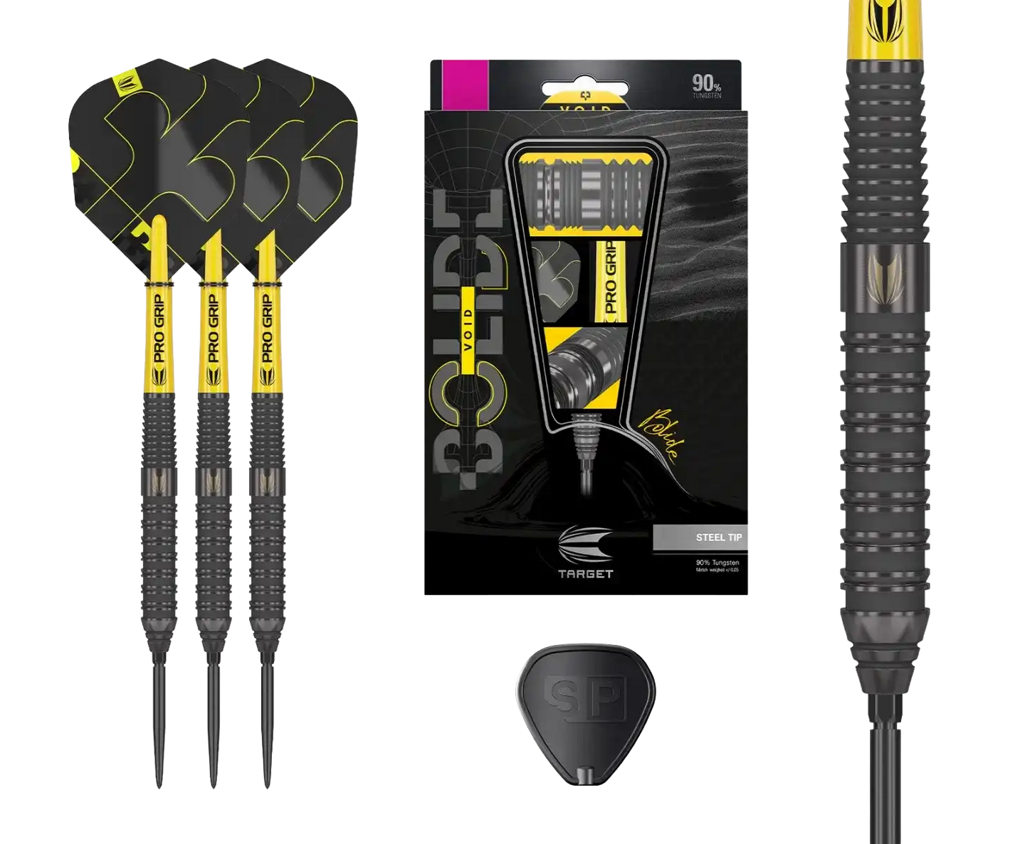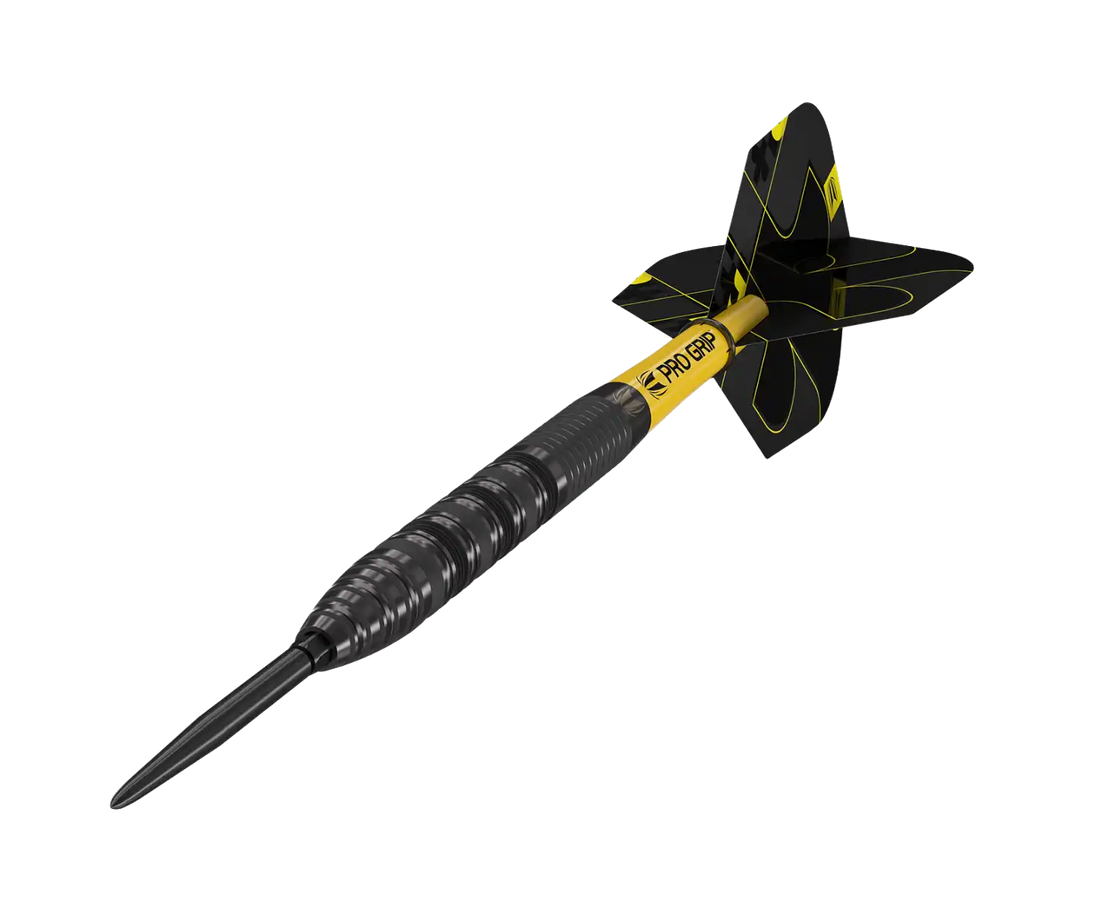 Hiekkapuhalletut radiaaliset urat tarjoavat selkeän pidon ja hyvän kontrollin ilman liiallista aggressiivisuutta. Kokonaisuuden viimeistelevät Pro Grip -varret, Bolide Void Edition No.6 -sulat sekä mustat 26 mm Swiss Point -kärjet, jotka mahdollistavat kärjen helpon vaihdon ja varman lukituksen.