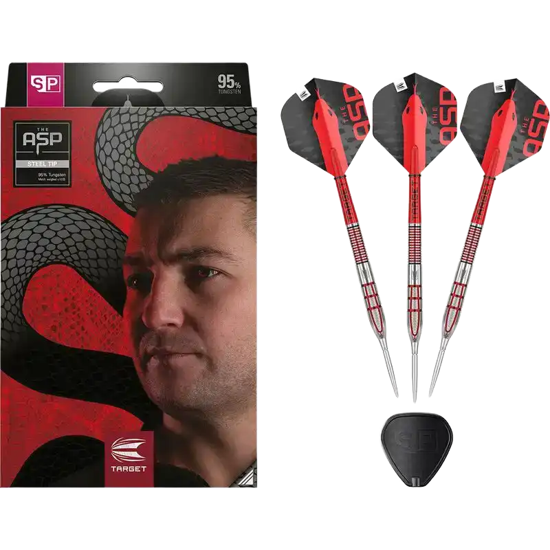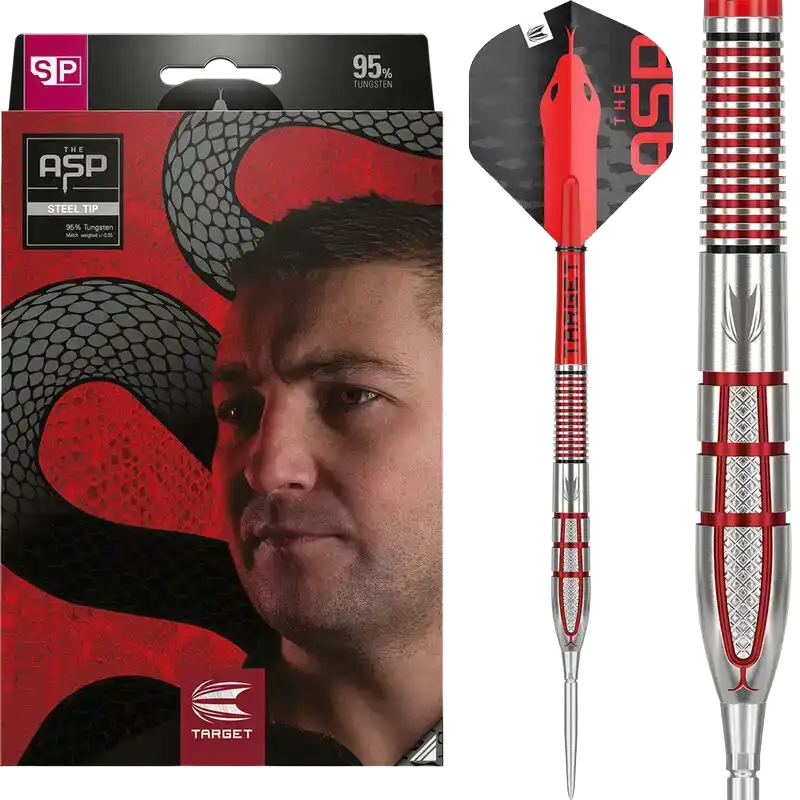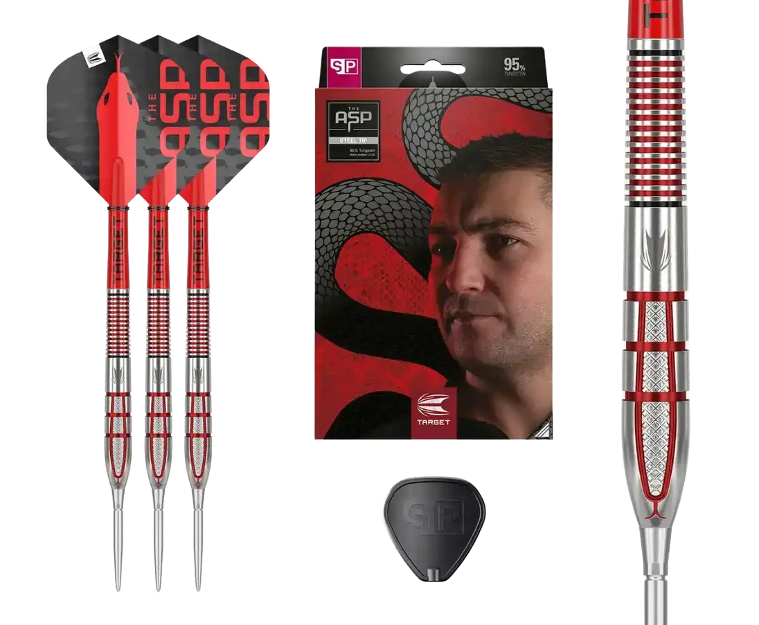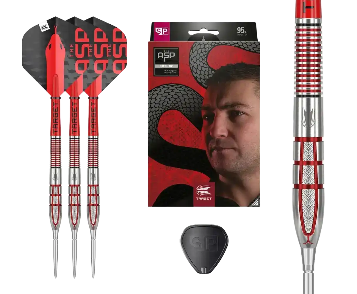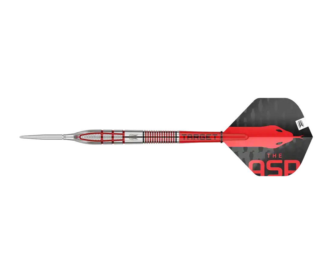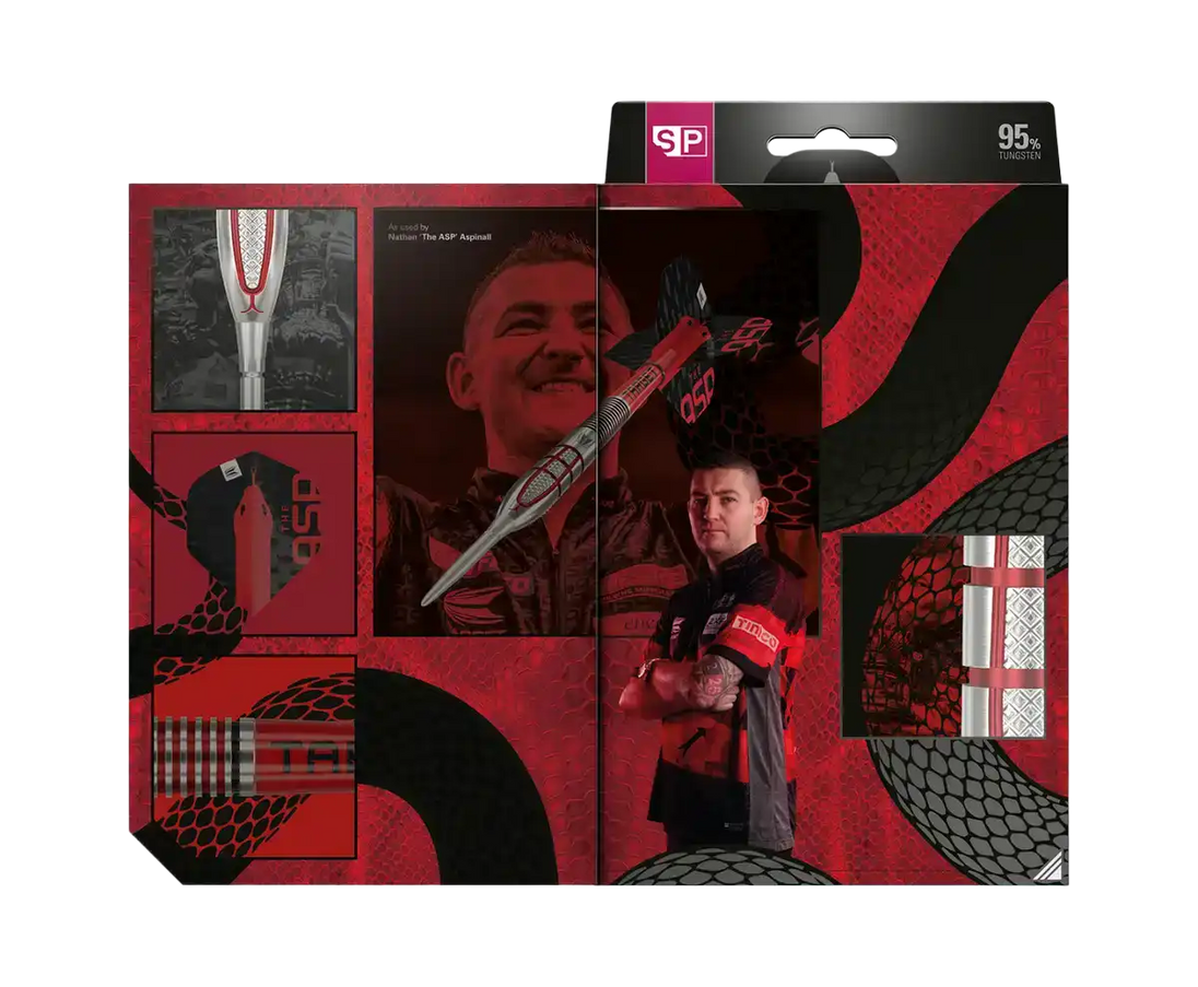 Uniikki barrel-muotoilu viittaa Aspinallin “The Asp” -teemaan ja sisältää useita eri grippialueita, jotka tukevat hänen dynaamista heittotyyliään. Tarkasti koneistetut gripit tarjoavat selkeän pidon koko barrelin matkalla ilman epätasapainoa. Kokonaisuus on suunniteltu kilpapelaajalle, joka etsii maksimaalista hallintaa, toistettavuutta ja ammattilaistason suorituskykyä.